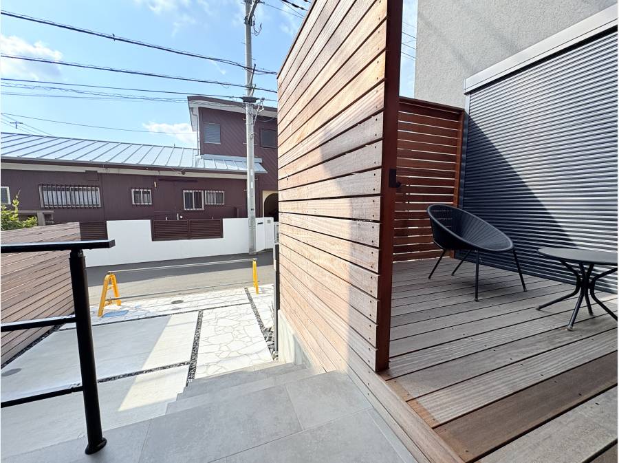 また、リビングから繋がる外部吹抜(テラス空間)は、外からの視線を遮りつつ、心地よい開放感を日常にもたらします。