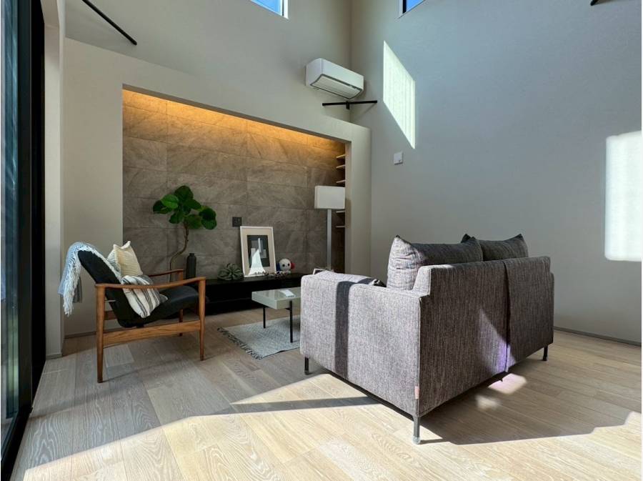 約21帖の大空間に、3面のFIX窓から降り注ぐ柔らかな自然光。室内とは思えないほどの開放感に包まれます。