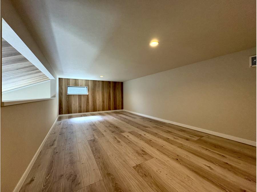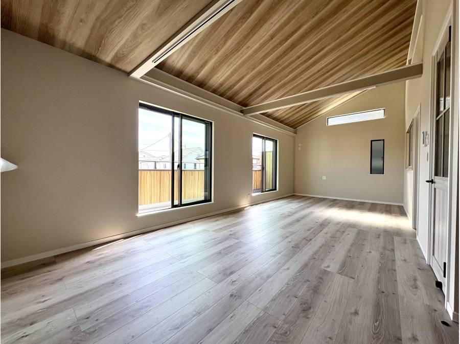 さらに、階段でスムーズに上がれる15帖の大型ロフトは、天井フラットで収納や趣味の空間として多目的に活用可能です。