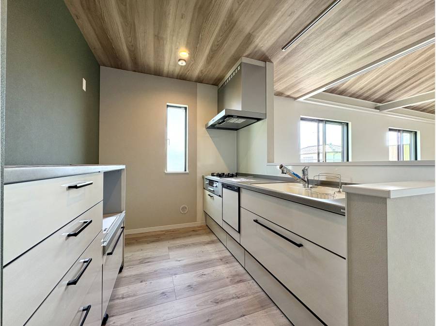 設備面も妥協なく、食洗機付システムキッチンやW1800のカップボード、洗面台とトイレを各階に設置するなど、高い利便性を追求しました 。
