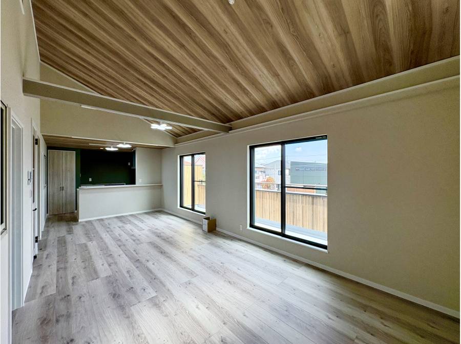 建物は耐震等級3を取得しており、安心感を提供します。また、2階のリビングダイニングは勾配天井の開放感と床暖房を備え、15帖のロフトが趣味や収納の可能性を広げます。
