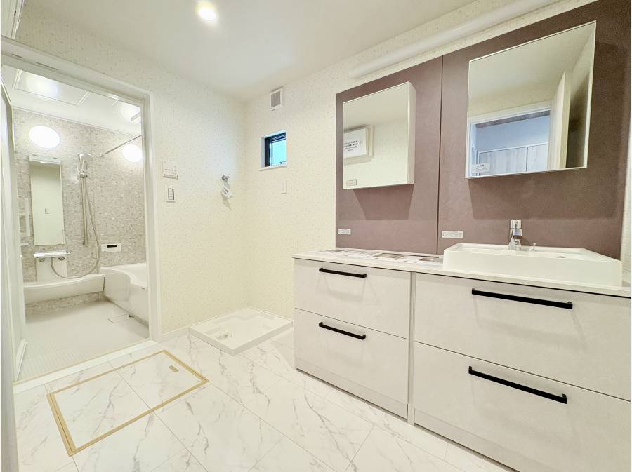 1階に水回りがまとめられ室内を清潔に保てる工夫のある間取りです。玄関にはシューズインクローゼットを完備。