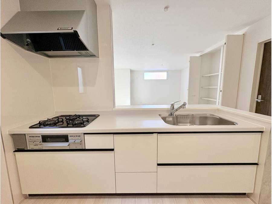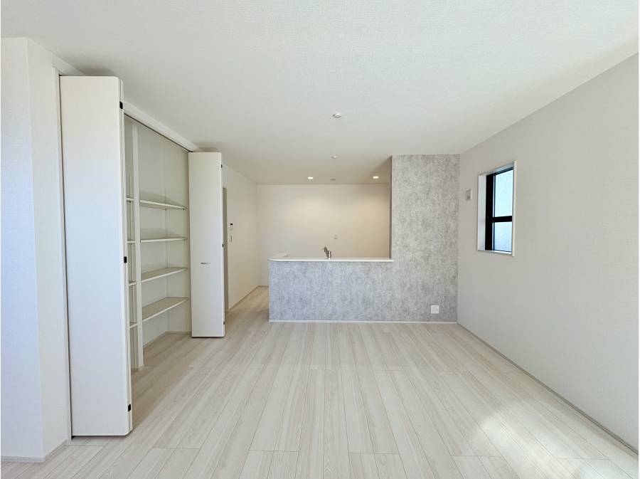 ゆとりのある19帖のLDK。家具のレイアウトもしやすい広々した空間。対面式のシステムキッチンはご家族と会話を楽しみながら調理できます。