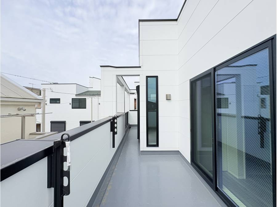ルーフバルコニーを備えた3LDK+Sのゆとりある間取り。カースペースは縦列にて2台分確保しております。