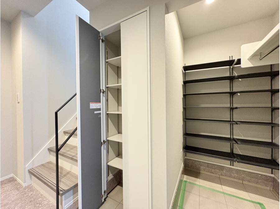 玄関にはベビーカーも保管できる広さのシューズインクローゼット、