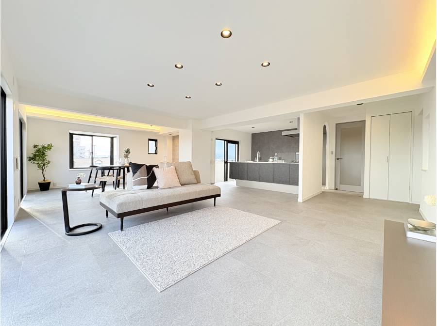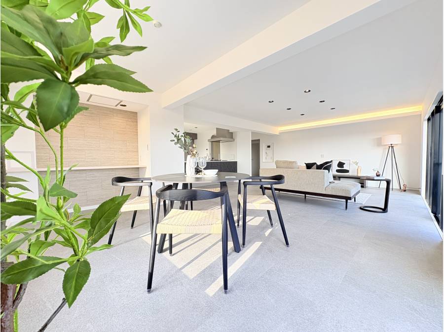 南向きの陽当たりに恵まれた立地に加え、最上階・4面採光を実現した明るく開放的な住空間が広がります。