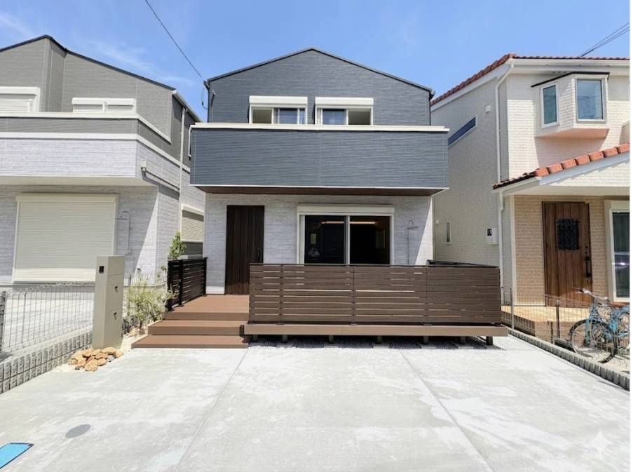 茅ヶ崎市松が丘の閑静な住宅街に、大型ウッドデッキを備えたデザイナーズハウスが誕生しました。