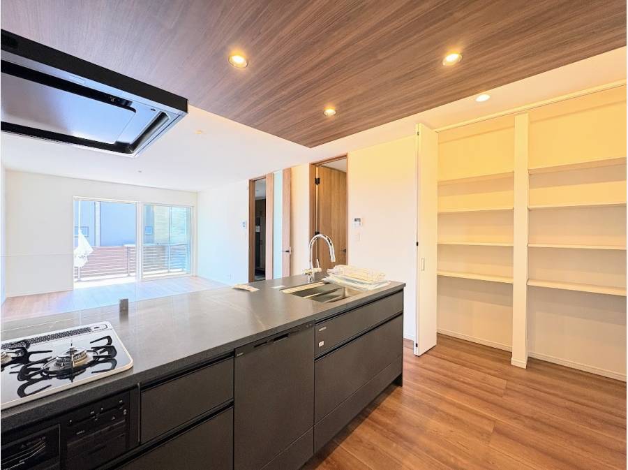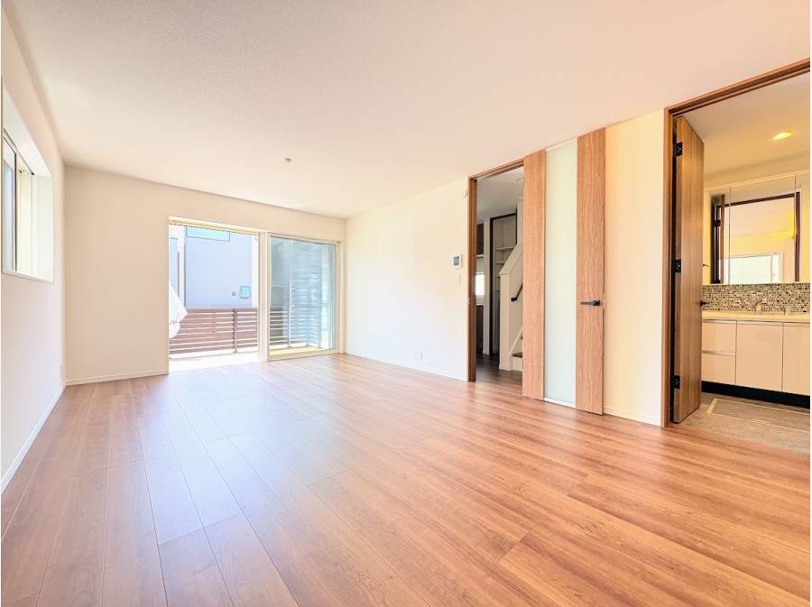 最大の魅力は、リビングからつながる広々としたウッドデッキ。夏にはお子さまとプールを楽しんだり、休日の朝にテーブルを出して「おうちカフェ」を満喫したりと、暮らしの楽しみが広がります。