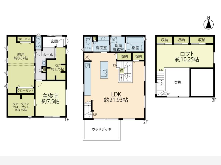 階段の先には、収納付きで10帖を超えるロフトを完備。さらに、各3.75帖のSIC・WICを備えており、収納力も充実しています。