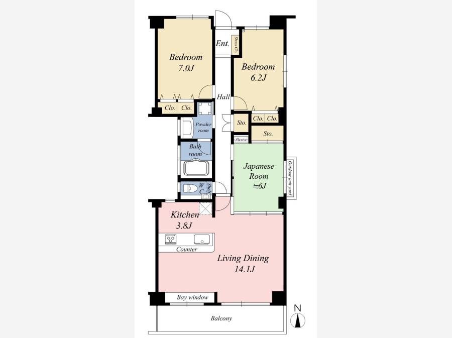 14.1帖のLDKに加え、6帖の和室や大容量の収納を備えた機能的な間取りが魅力です。