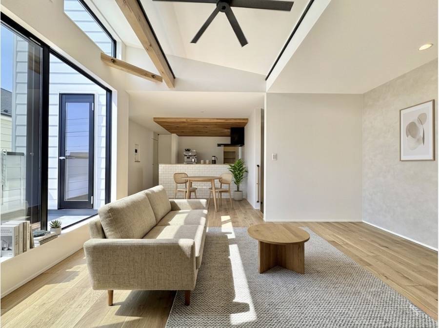 今回ご紹介の棟の最大の見どころは、約20帖の大空間LDKと、上部吹き抜けが生み出す開放感です。