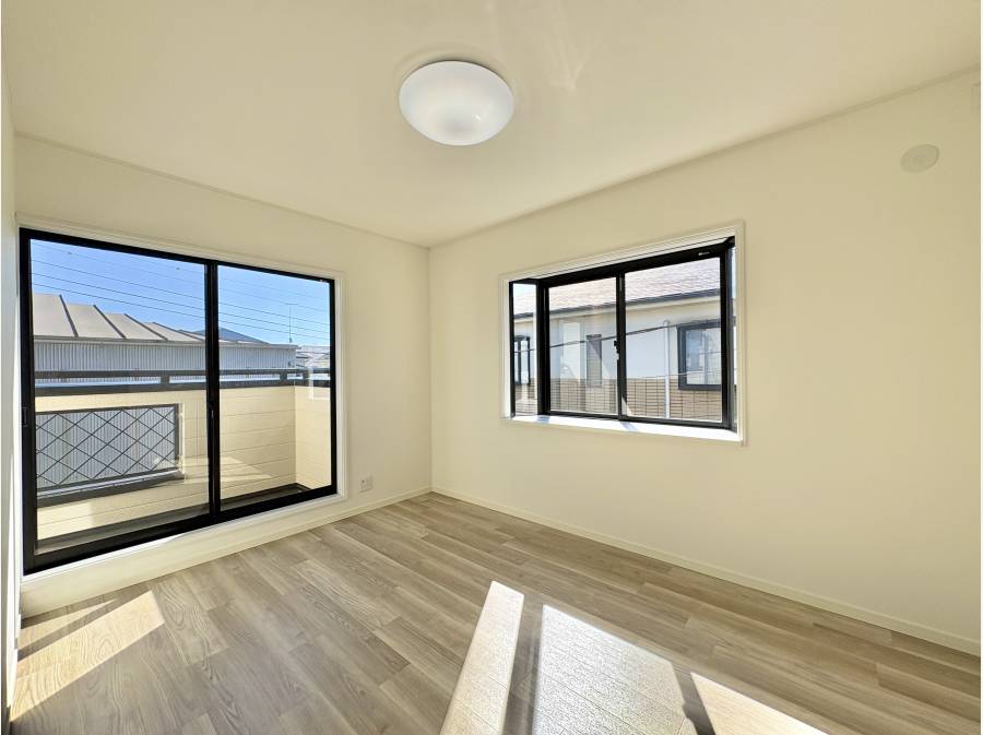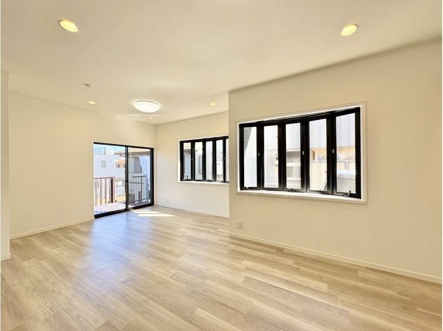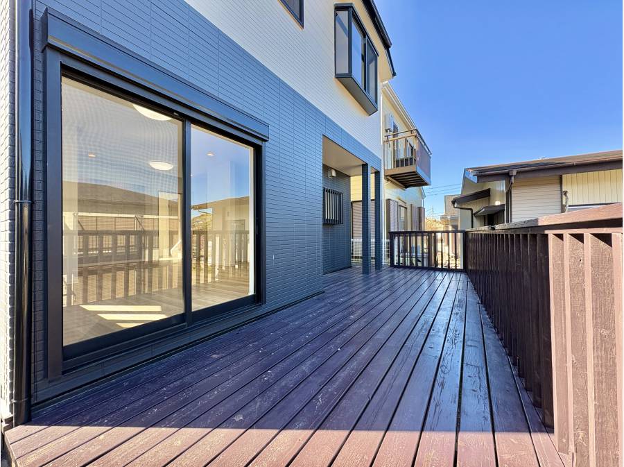 LDKの窓を開けると大きなウッドデッキがあり、晴れた日にはLDKの延長としてお使いいただけます。