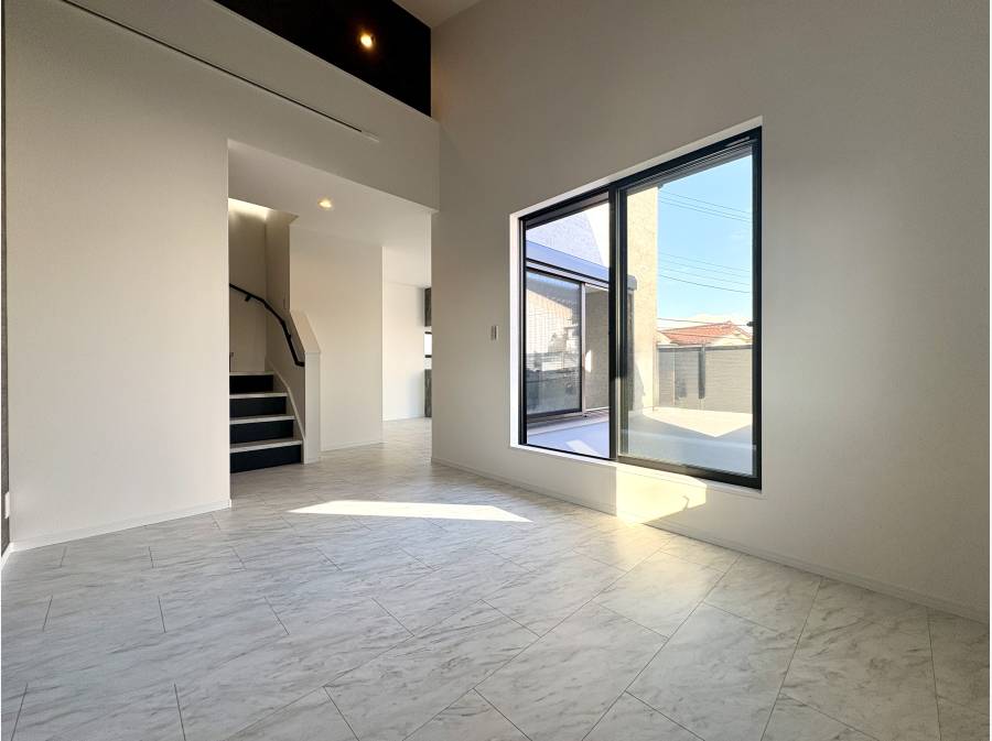 住まいの中心となる2階リビングは、陽光をたっぷりと取り込む伸びやかな空間。
