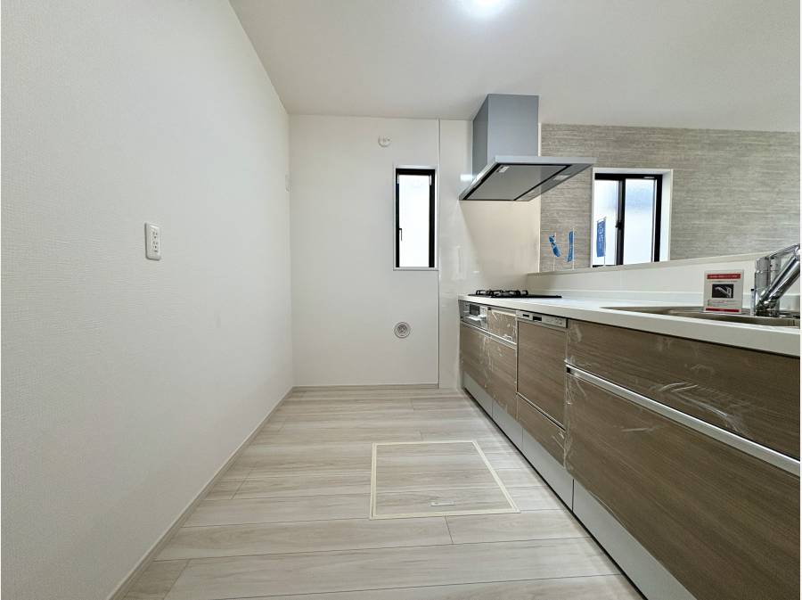 キッチンには食洗機などの設備が揃い、家事をスムーズに進められる工夫が詰まっています。