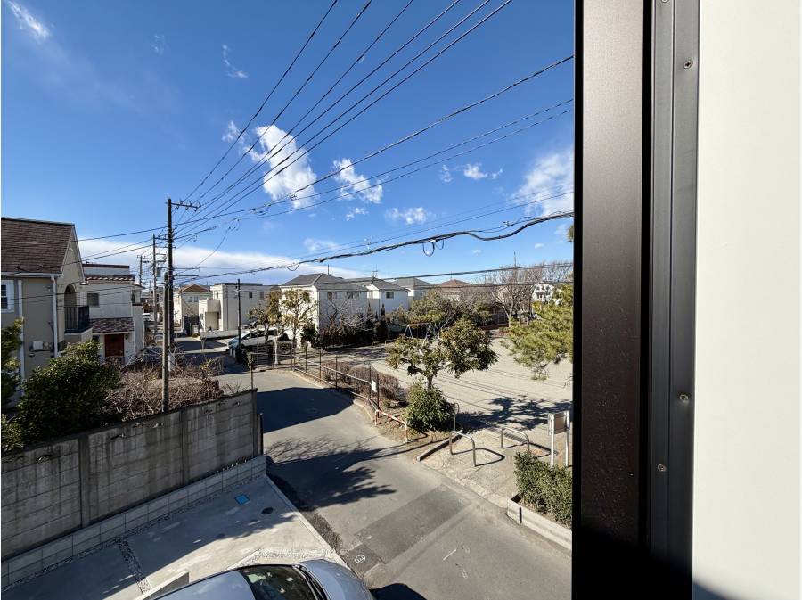 前路向いには子どもが遊べる公園があり、周辺は落ち着いた住環境で交通量も少なめ。小学校や病院も身近にそろった、安心して子育てができる住環境です。2階の窓から公園が見えるため、室内にいながらお子さまの様子を見守ることができます。