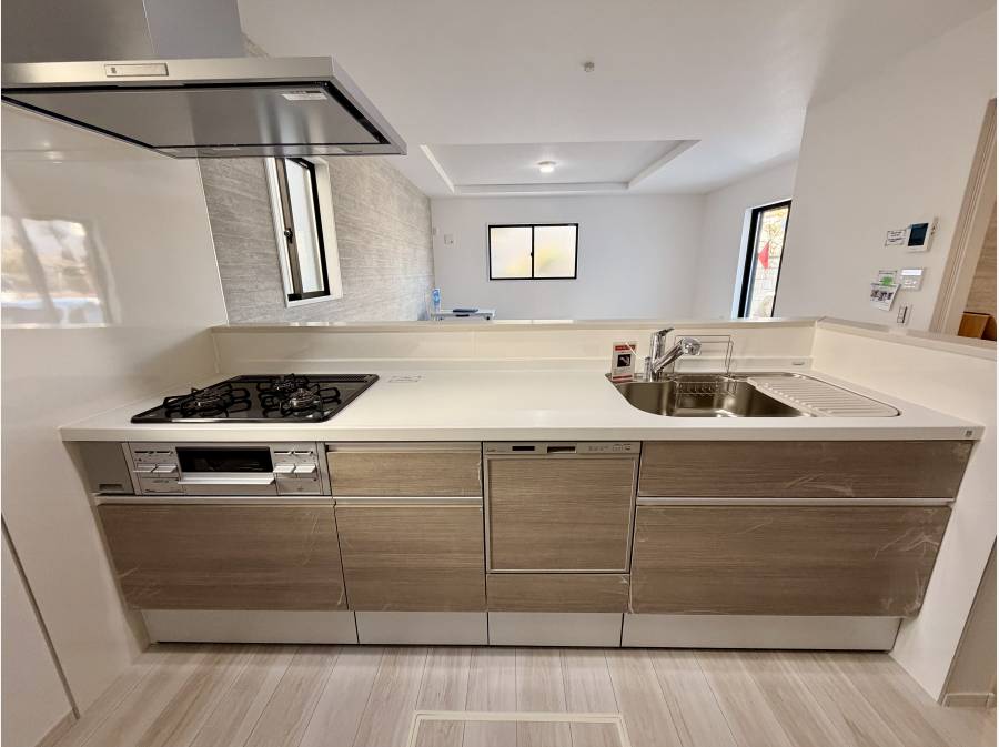 キッチンは対面式のシステムキッチン、食洗機がついているので食器洗いも容易に行えます。