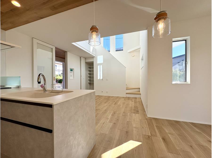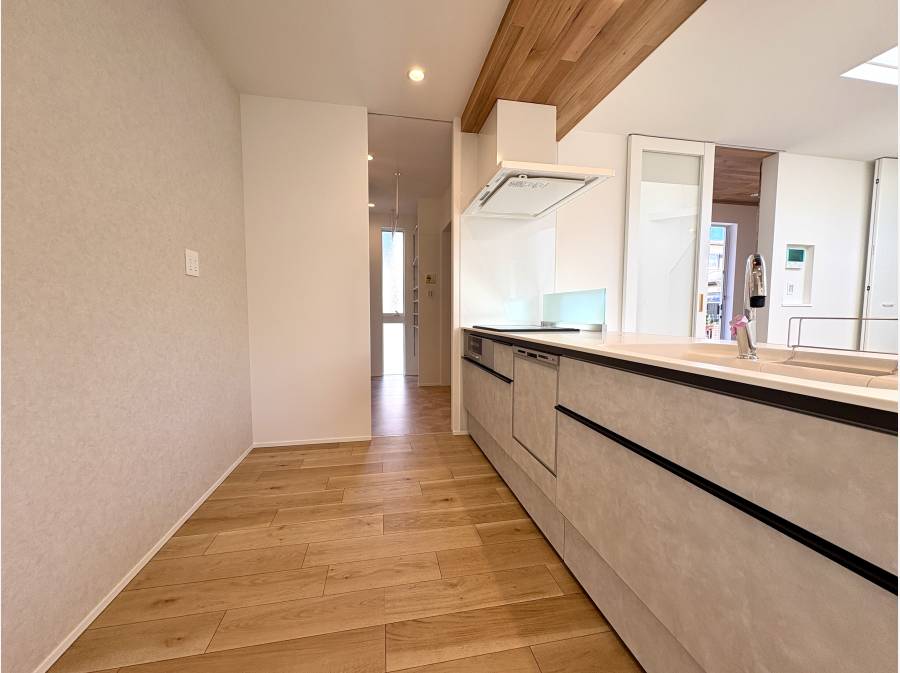 キッチンは水回りへ直結する便利な動線設計で、家事のしやすさにも配慮。