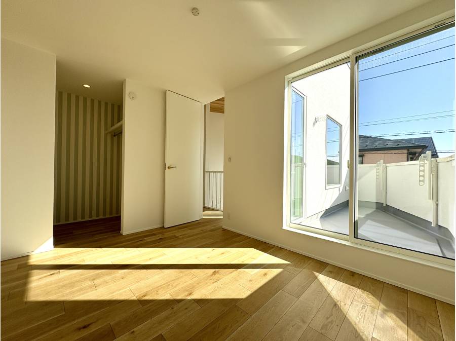 2階には3つの洋室と南向きバルコニーを備え、主寝室にはウォークインクローゼットを設けています。