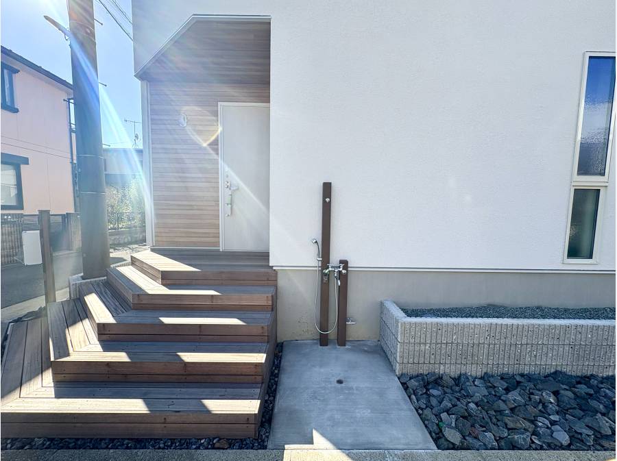 外には海帰りやお子様の水遊び後に重宝する外シャワーも完備。