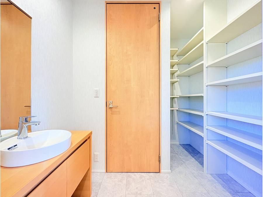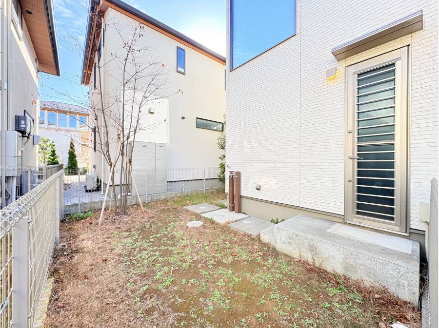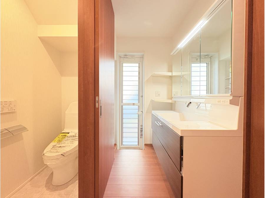 1階のサニタリースペースから直接お庭へ出られる家事動線 を確保。