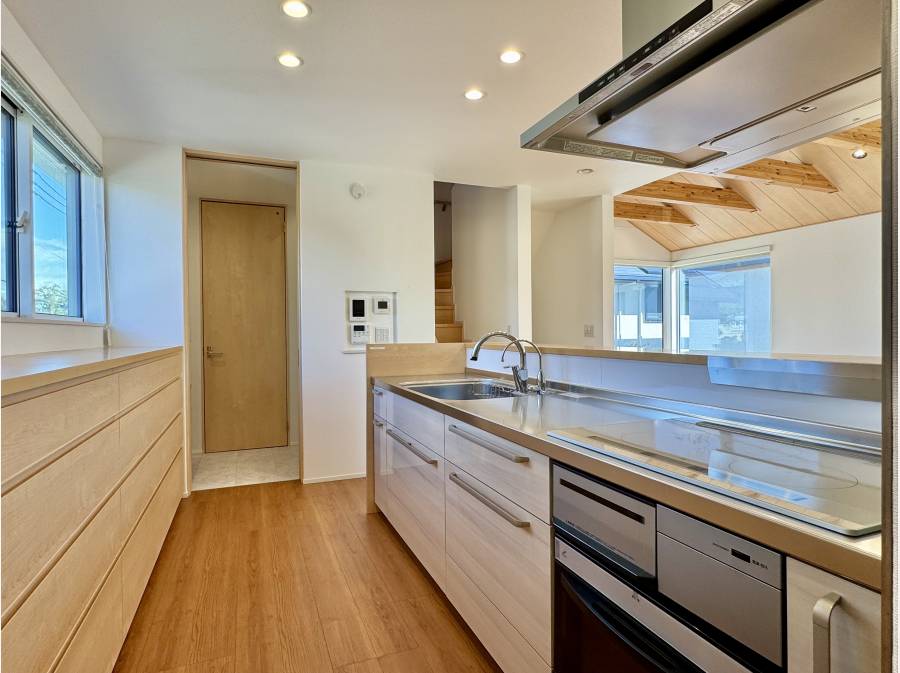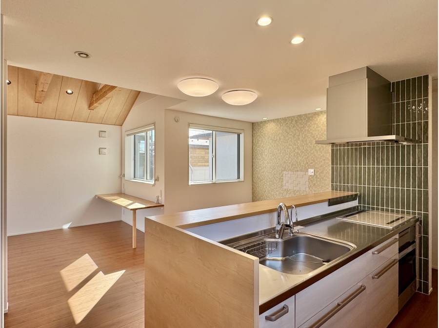 木と自然素材の質感を大切にした注文住宅。リビングに差し込む陽光、ロフトやワークスペースの柔軟性、家族それぞれの時間が心地よく交差する間取り設計。辻堂東海岸の穏やかな街並みに溶け込む、上品で落ち着いた佇まいです。