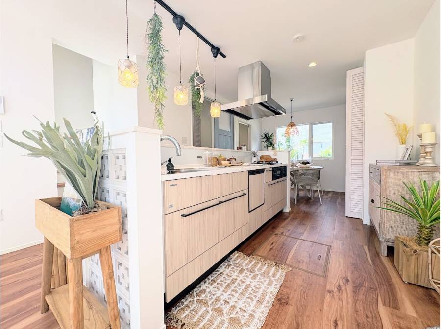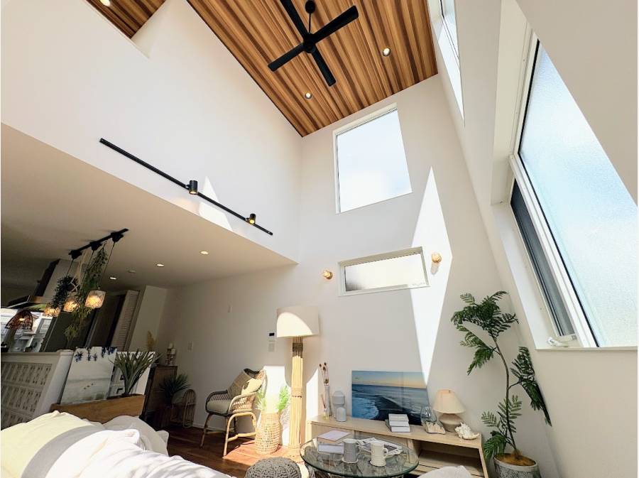 約18.1帖のLDKは、シーリングファン付きの吹き抜けを採用。縦の広がりも感じられる、開放感あふれる空間で、家族がのびのびと過ごせます。