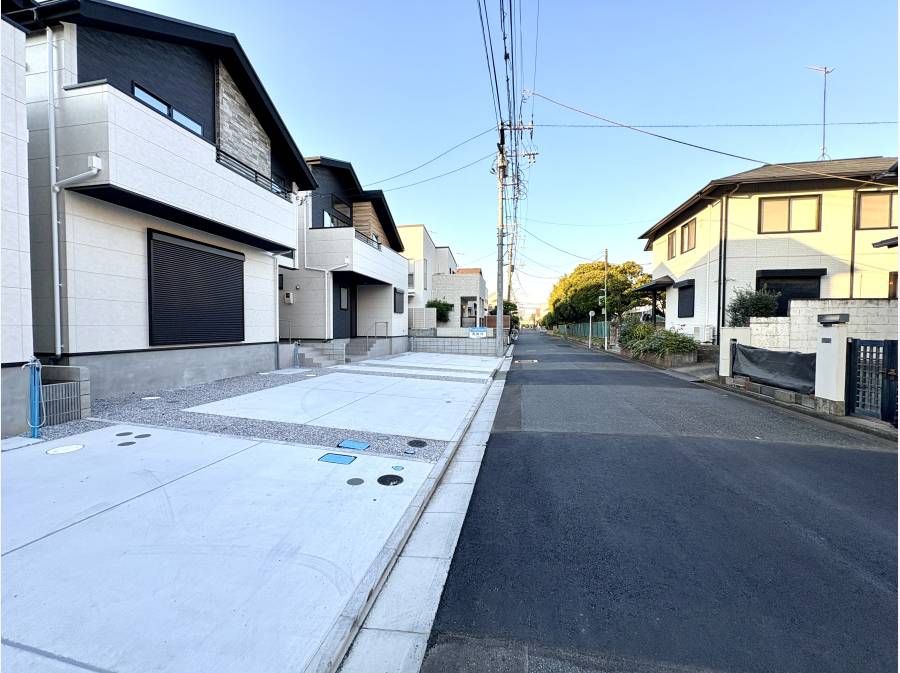 並列2台分のカースペースを確保し、前面道路は約6mとゆとりある幅員。