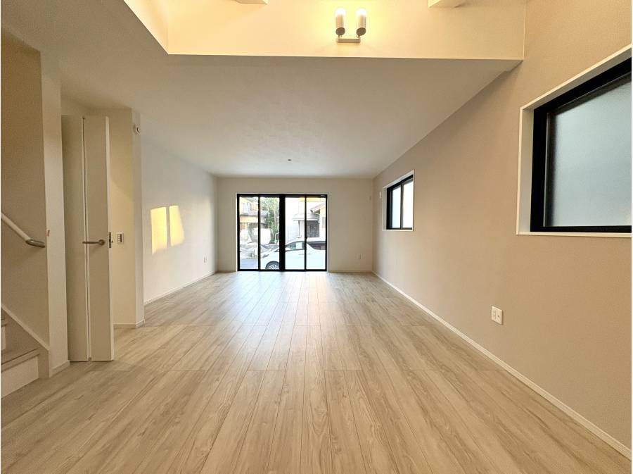 約20.8帖の広さに吹き抜けが重なり、自然光が心地よく広がる空間です。