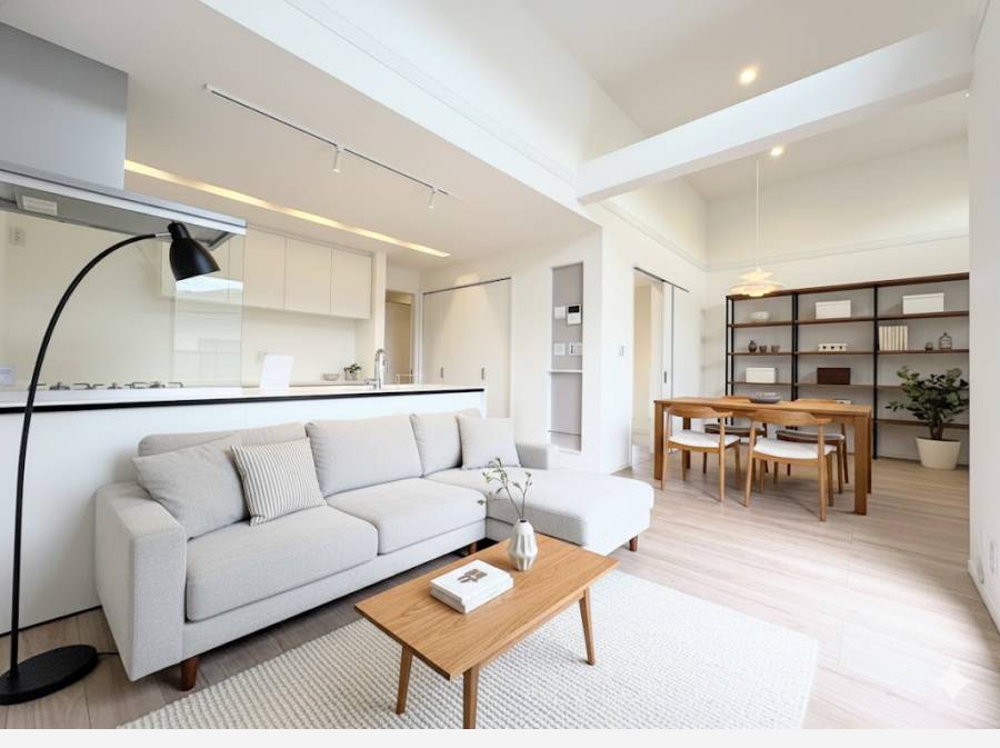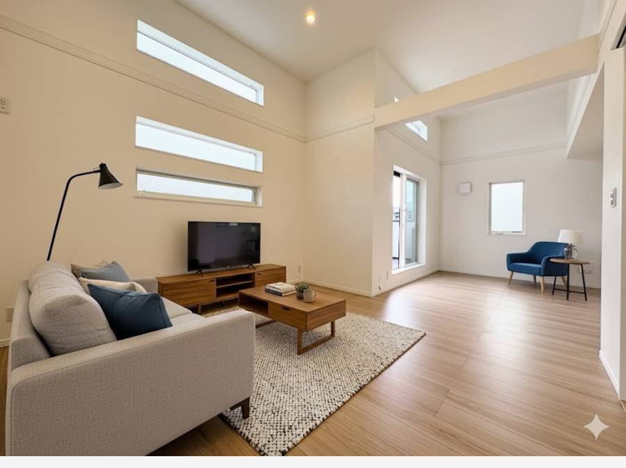 光と風が織りなす、白の空間。高天井LDKで叶える、湘南の開放的な暮らし