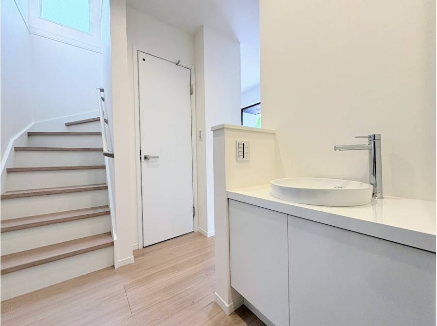 サニタリールーム、ランドリールーム、LDKが回遊できる動線を採用。家族みんながスムーズに動ける設計で、特に水回りでの家事効率を格段に高めてくれます。