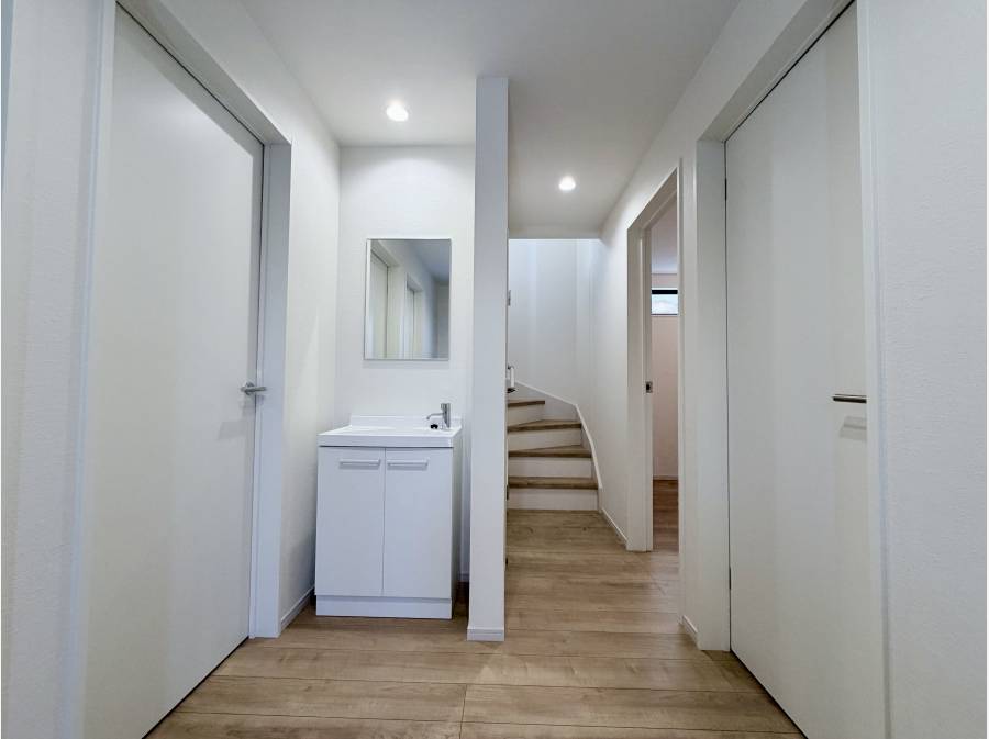 玄関に洗面台があり帰ってきてからすぐ1階の各部屋に出入りすることができ、手を洗う習慣が身につき健康と清潔をまもることができます。各部屋収納が付いているので私物を管理に便利です。窓にシャッターも付いているので防犯対策もバッチリです。