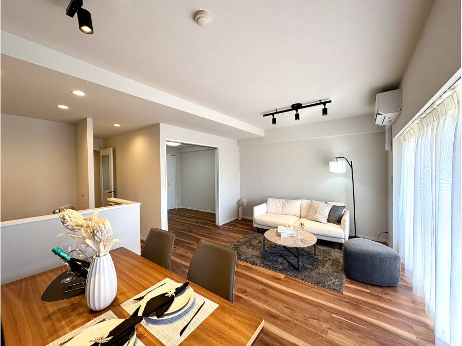 新たにリノベーションされた室内は、やわらかな光が包む心地よい空間です。