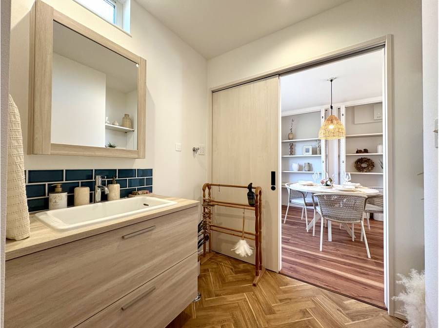 室内にも花ブロックやルーバー建具、シーリングファンやマリンランプなどリゾートを感じるこだわりの仕様となっております。