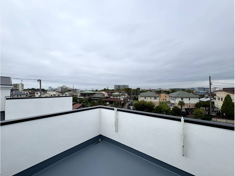 2階の上部、3階レベルに位置する約6.1帖のルーフバルコニーは、