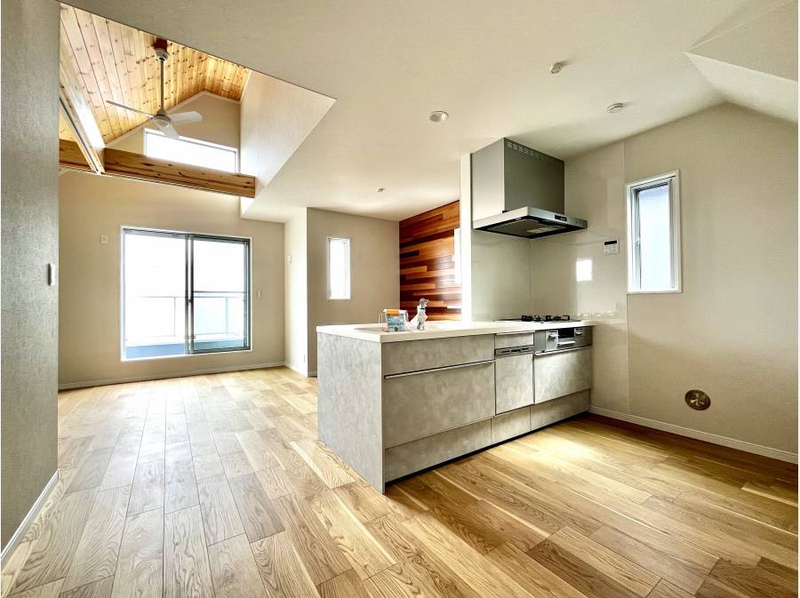 室内に入れば、広々としたLDKと、開放感を演出する吹抜天井が迎えてくれます。