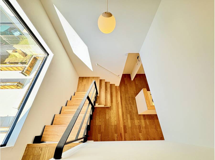 このお住まいの最大の魅力は、空間にリズムと遊び心をもたらす「スキップフロア」設計。
