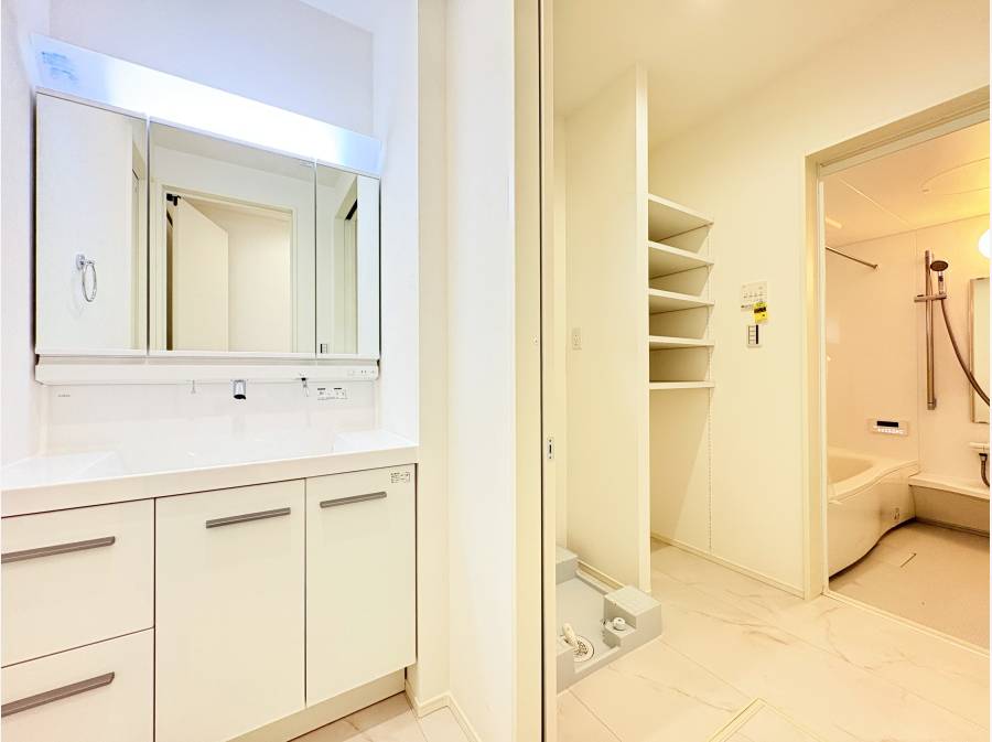 家事動線に優れたセパレートタイプの洗面・脱衣室や、ゴルフバッグなどもしまえる備蓄倉庫 、陽光あふれる奥行きのある南向きバルコニーなど、暮らしやすさを高める工夫が随所に施されています。