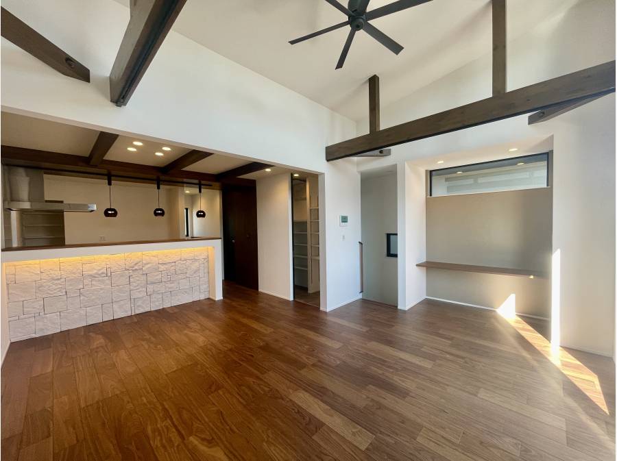 約22.5帖のLDKは、縦方向へ美しく伸びる開放的な大空間。