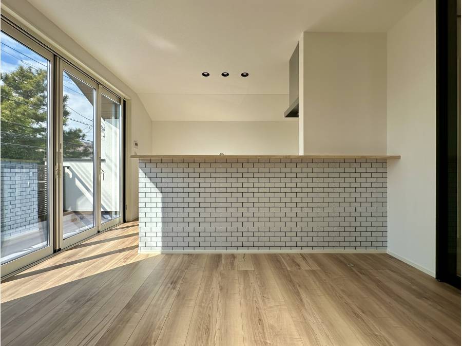 約20帖のLDKは上部吹抜けていて、とにかく開放感がございまして、南西向きの為、陽当り良好です