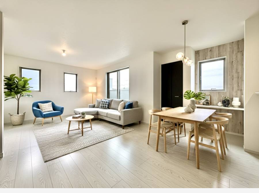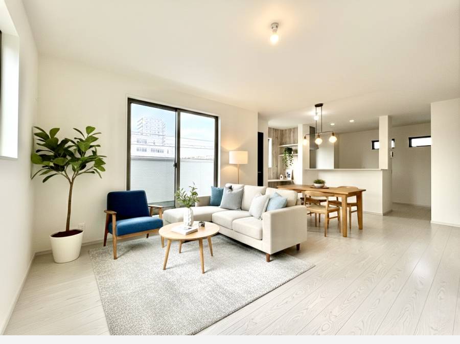 ゆったりと開放的なリビングダイニング。家具等はCGで作成したイメージ