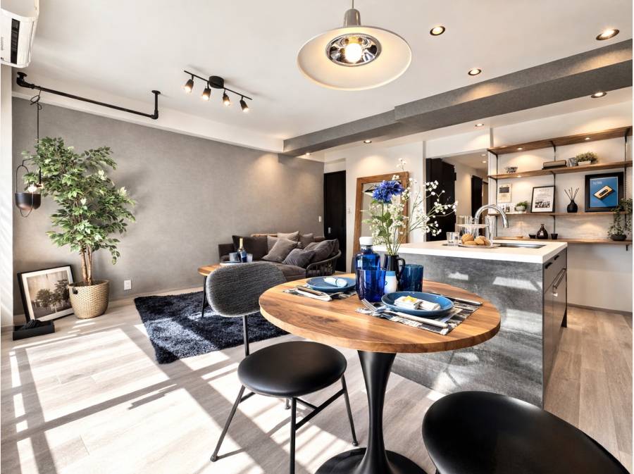 光が差し込む大人モダンなリビング・ダイニング・キッチン。