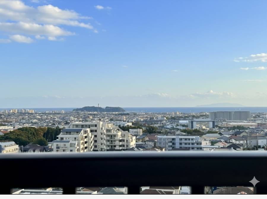 湘南エリアを一望する高層階リノベーションマンション「ココタウンヒルズマリーナ」一室のご紹介です。南向きのバルコニーからは陽光がたっぷりと注ぎ、相模湾方面の開放的な眺望がお楽しみいただけます。