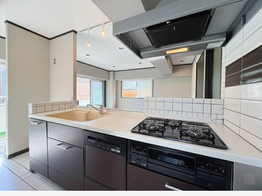 床暖房で足元から暖かさを感じられるほか、雨の日に便利な浴室乾燥機も備えています。また、開放的なカウンターキッチンでは、家族との会話を楽しみながら料理ができます。