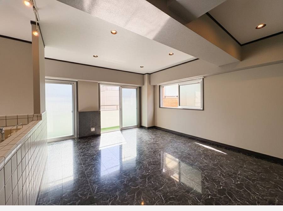 南西角部屋で3面採光があり、約13畳のLDKには明るい陽光が降り注ぎ、風通しも良好です。