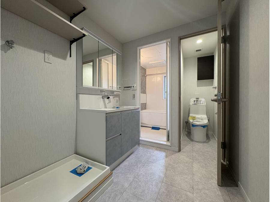 広さにゆとりのある洗面室で、洗濯物の出し入れや作業もスムーズ。毎日の家事がはかどります。