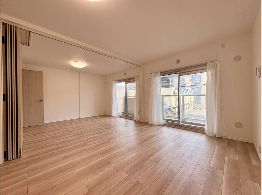 洋室3部屋に17.5帖のLDK。仕切り吊り戸を開けて洋室と一部屋にすれば23.5帖と広々使うことができます。
