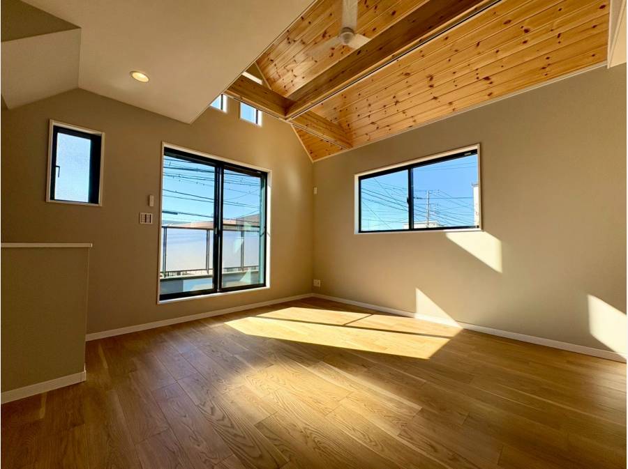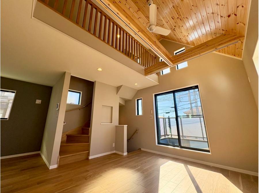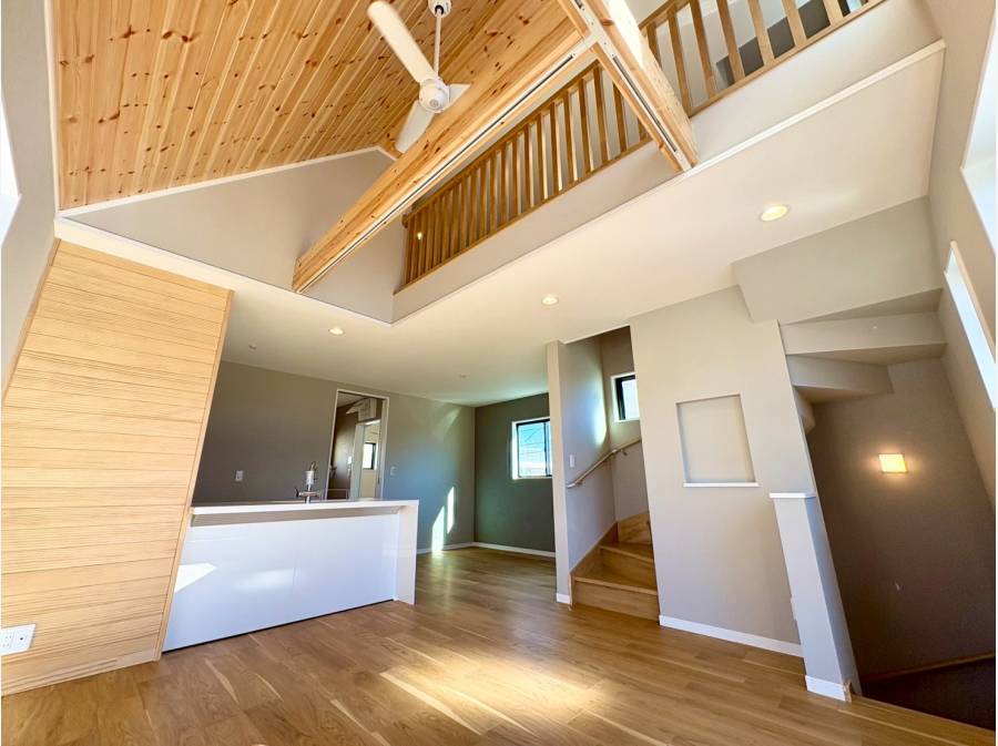 16.4帖のLDKは開放感あふれる吹き抜け天井が魅力。固定階段で上がれる8.1帖の小屋裏収納は、シアタールームや秘密基地のような遊び場としても活躍します。