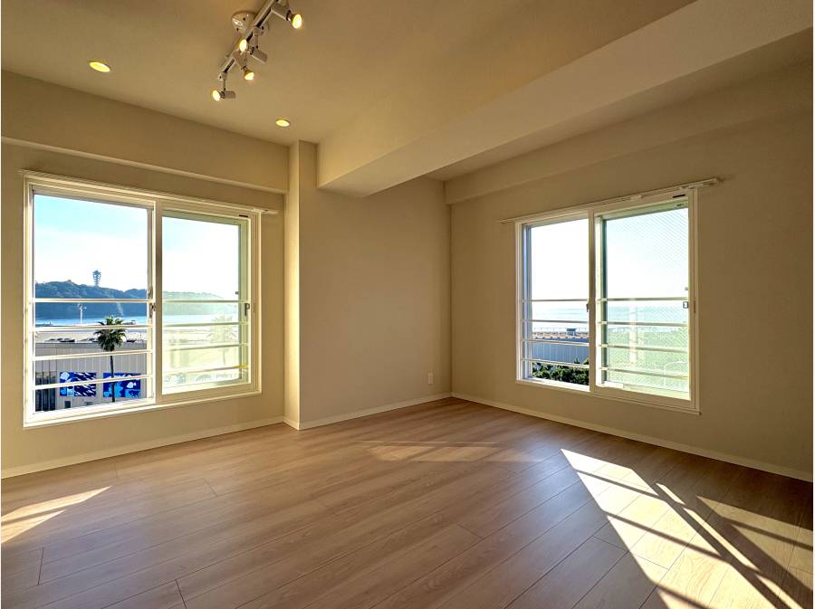 《オーシャンビュー》「片瀬江ノ島」駅徒歩5分、97㎡超、光あふれる三方角部屋、ペットと叶える、家具付きフルリノベーションの日常。