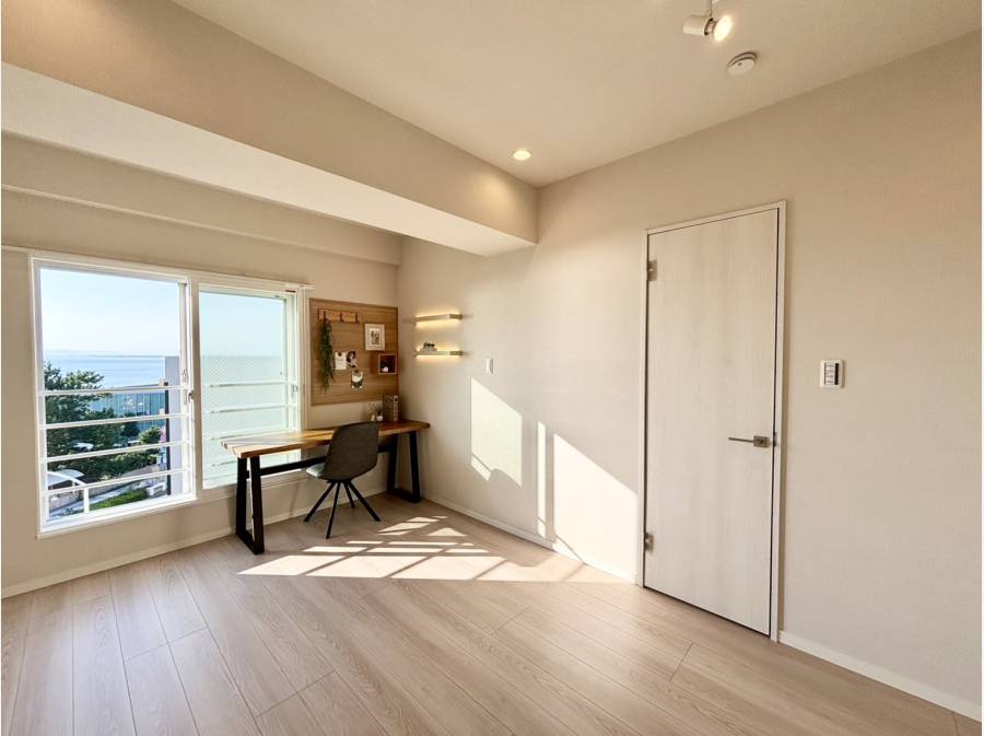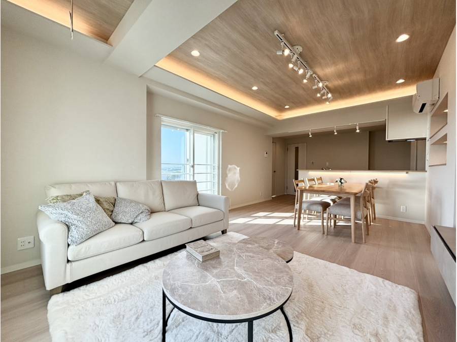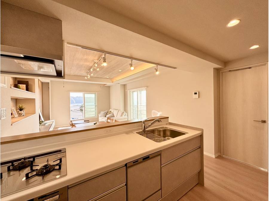 2025年9月に室内を一新し、ナチュラルで心地よい空間へと生まれ変わりました。大きな窓から差し込む陽光がリビングを包み、海辺の空気を感じながらゆったりと過ごせる開放感がございます。