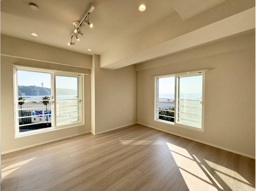湘南の海と空を独り占めするような特別な眺望がこの住まいのいちばんの魅力。本マンションは、江ノ島から富士山までを一望する3LDK・97㎡超のゆとりあるリノベーション住戸です。